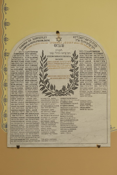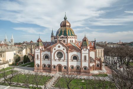 Синагога је саграђена 1902. године по пројекту Marsela Komora и Jakoba Deszo-a. У основи је централно оријентисана са карактеристичном куполом коју носе стубови те у целокупној концепцији објекта носе одлике “шатора”.