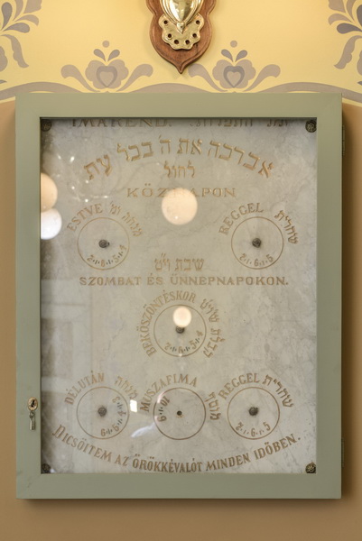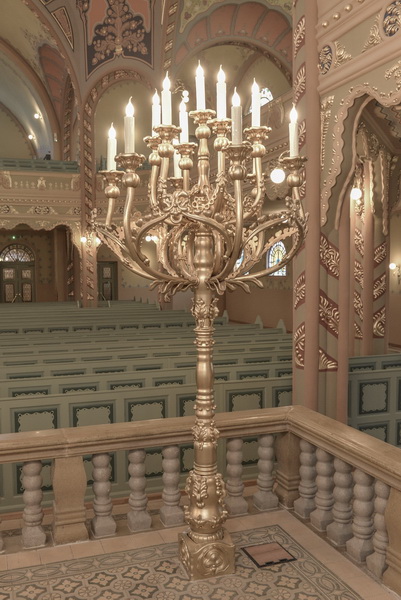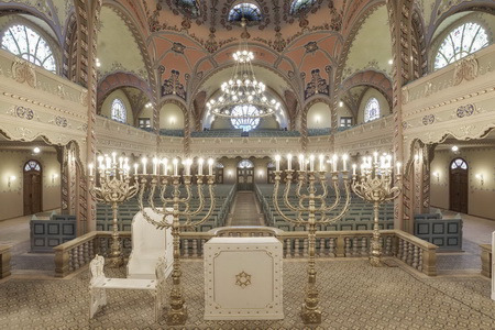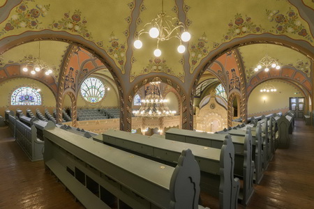 Синагога је опремљена изванредним витражима и сликаном декорацијом, мобилијаром и неопходним инвентаром. Целокупна декорација Синагоге израђена је у материјалима карактеристичним за сецесијске објекте тога доба – керамика, штук, витраж, а материјали су набављени из најбољих европских мануфактура.