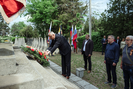 „Зато данас стојимо, као и увек, поносни на борбу за слободу и са највећим поштовањем за све оне који почивају овде и на совјетском војничком гробљу у нашем граду“, казао је градоначелник Стеван Бакић.