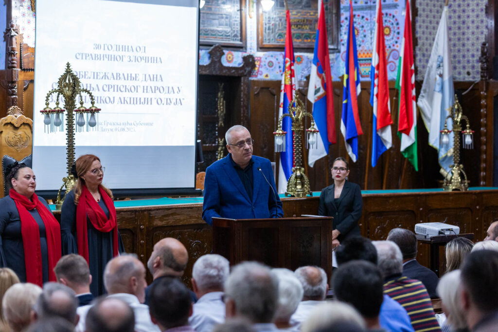 Округлим столом под називом „На младима остаје сећање као завет за будућност“, у Плавој сали Градске куће, изложбом „Култура памћења: Фотографије – злочиначка акција ’Олуја’“, на платоу на Тргу републике испред свечаног улаза у Градску кућу, обраћањима председника Савеза српских удружења Севернобачког округа, Мирослава Карана, управнице суботичког огранка Фондације „Светозар Милетић“ из Новог Сада, Љубице Бертовић, градоначелника Суботице Стевана Бакића и српског режисера и књижевника Драгослава Бокана, као и уручењем „Пакрачке грамате“, у оквиру трибине одржане у Великој већници Градске куће, вечерас је у Суботици обележена 30. годишњица страдања српског народа у злочиначкој акцији „Олуја“.